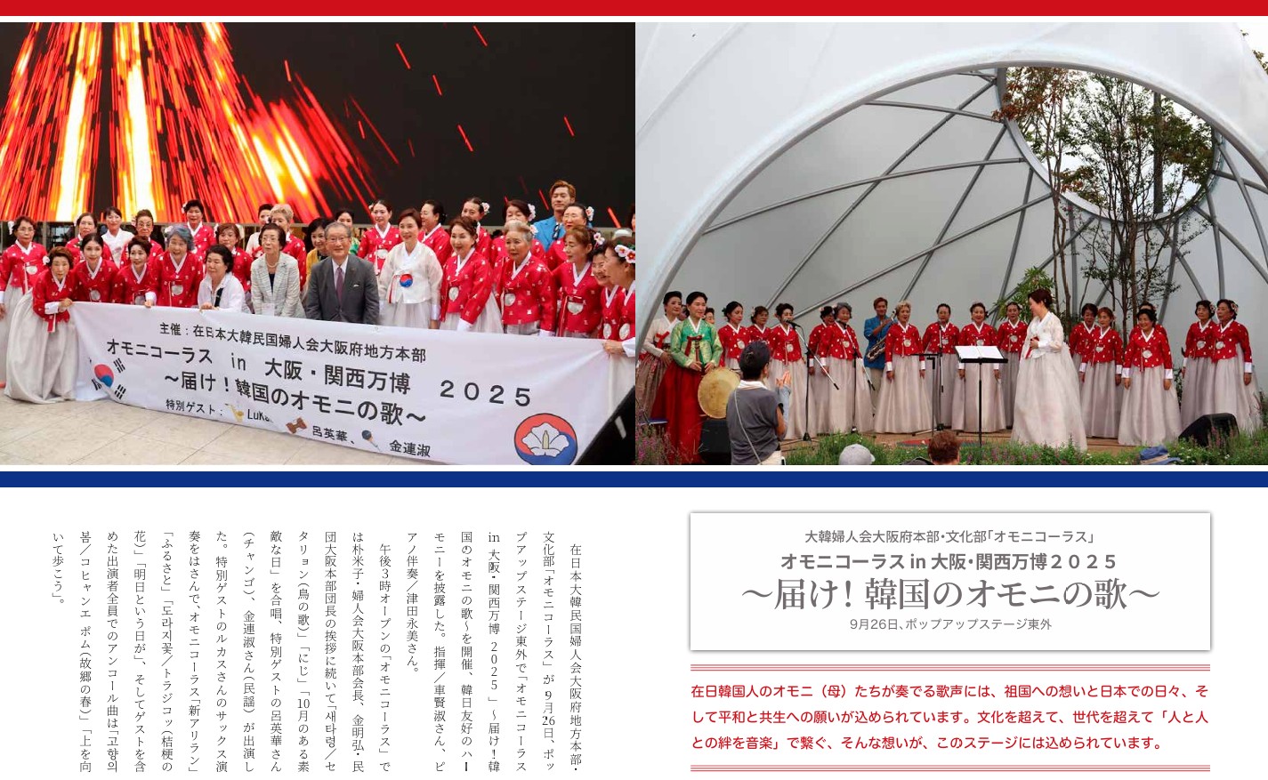 婦人会オモニコーラスが大阪関西万博にお目見え
