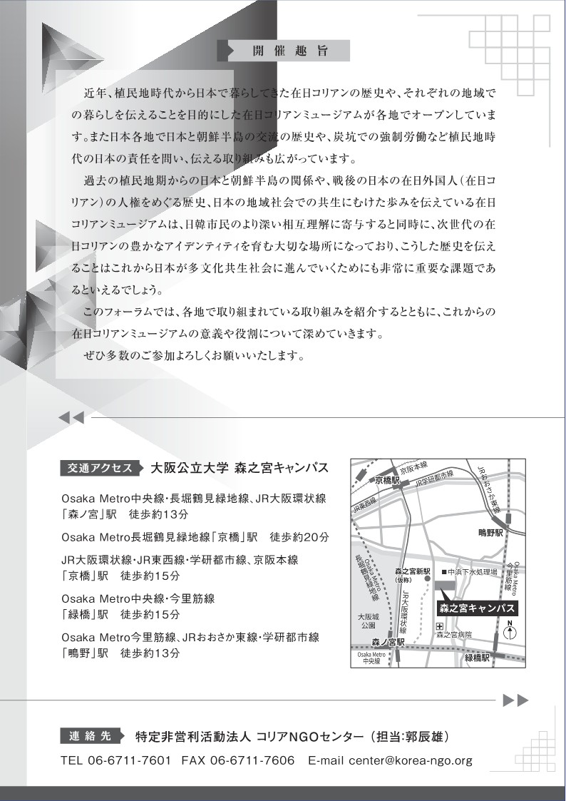 11月9日 前後80年 日韓条約60年「在日コリアンミュージアムフォーラム」開催のご案内