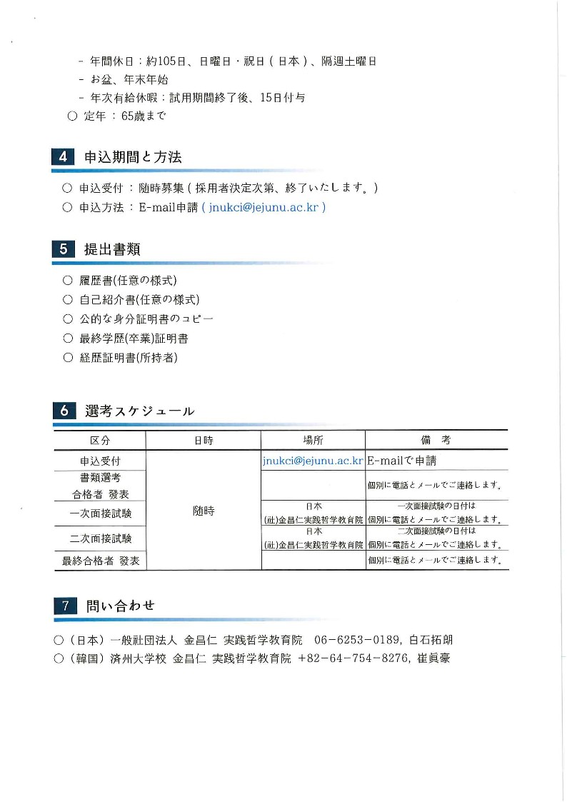 日本一般社団法人金昌仁実践哲学教育院 職員採用情報のご案内