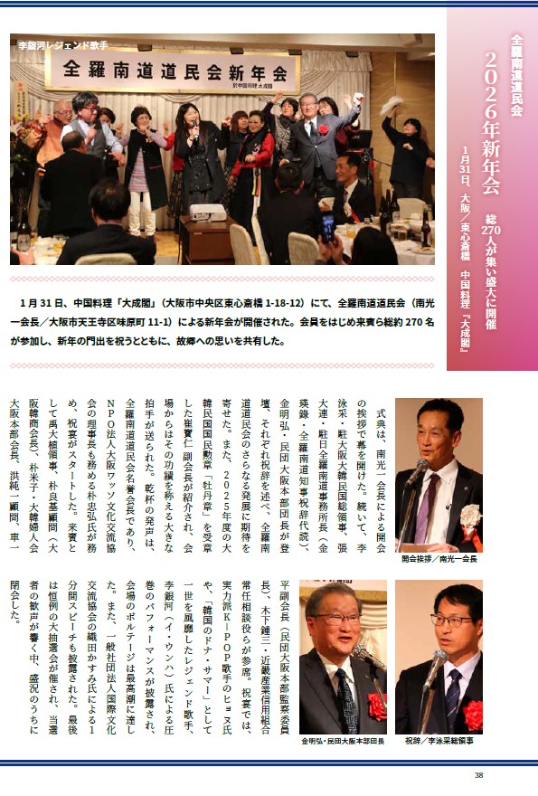 全羅南道道民会新年会に270余名が参加、盛大に開催