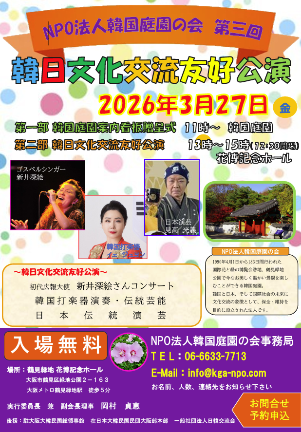 NPO法人 韓国庭園の会 主催「韓日文化交流友好公演」開催のご案内