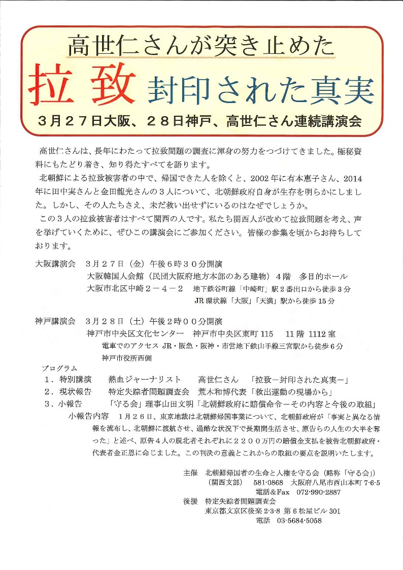 1.特別講演:熱血ジャーナリスト 高世仁 氏「拉致一封印された真実一」