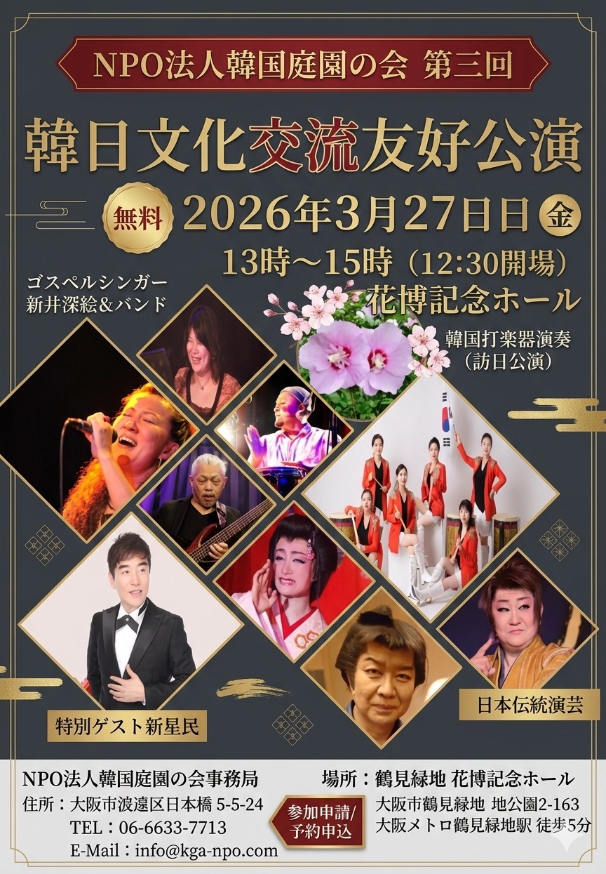 NPO法人 韓国庭園の会 第三回「韓日文化交流友好公演」開催のご案内