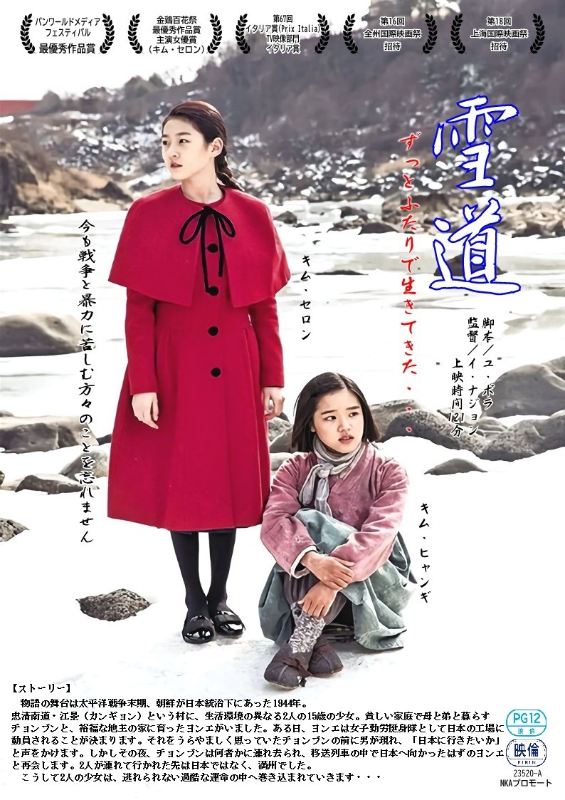 「雪道」は、2015年にKBSが制作した光復70周年特集ドラマを再編集した劇場版で、慰安婦として連行されることになった2人の少女が、過酷な運命の中で支え合う姿と深い友情を描いた作品です。
