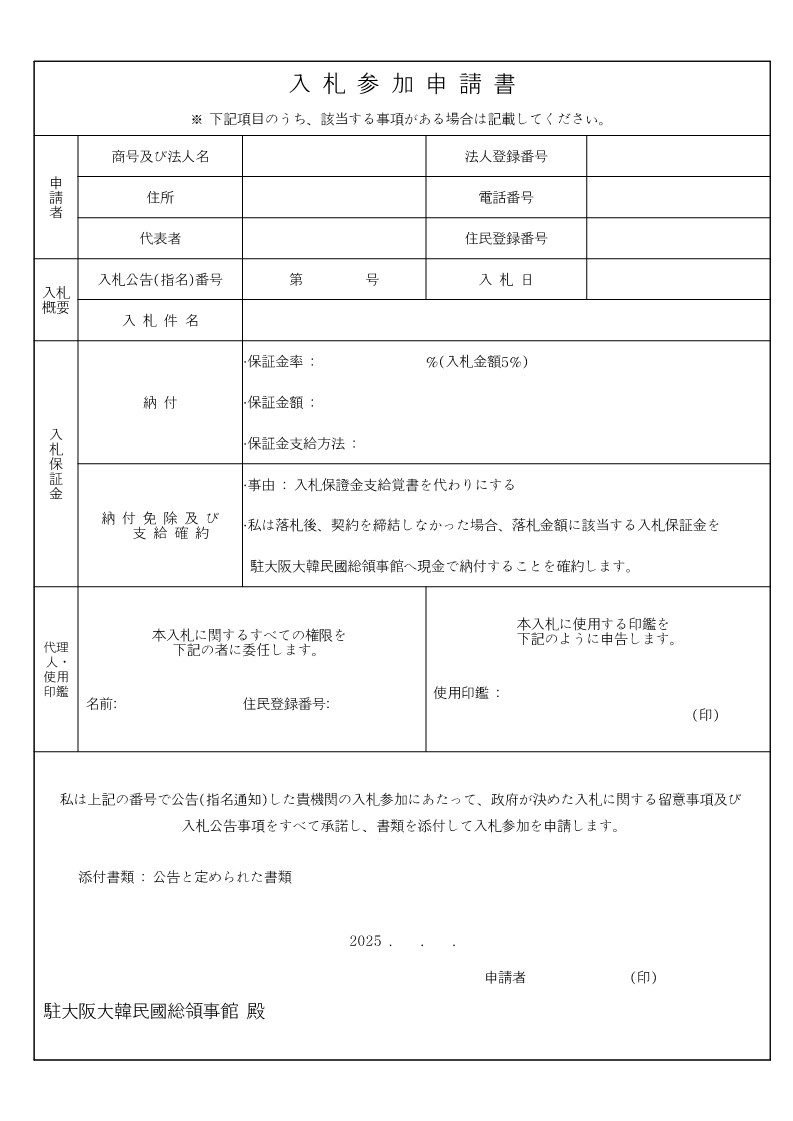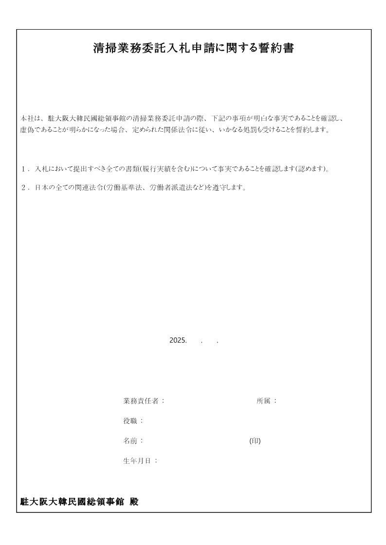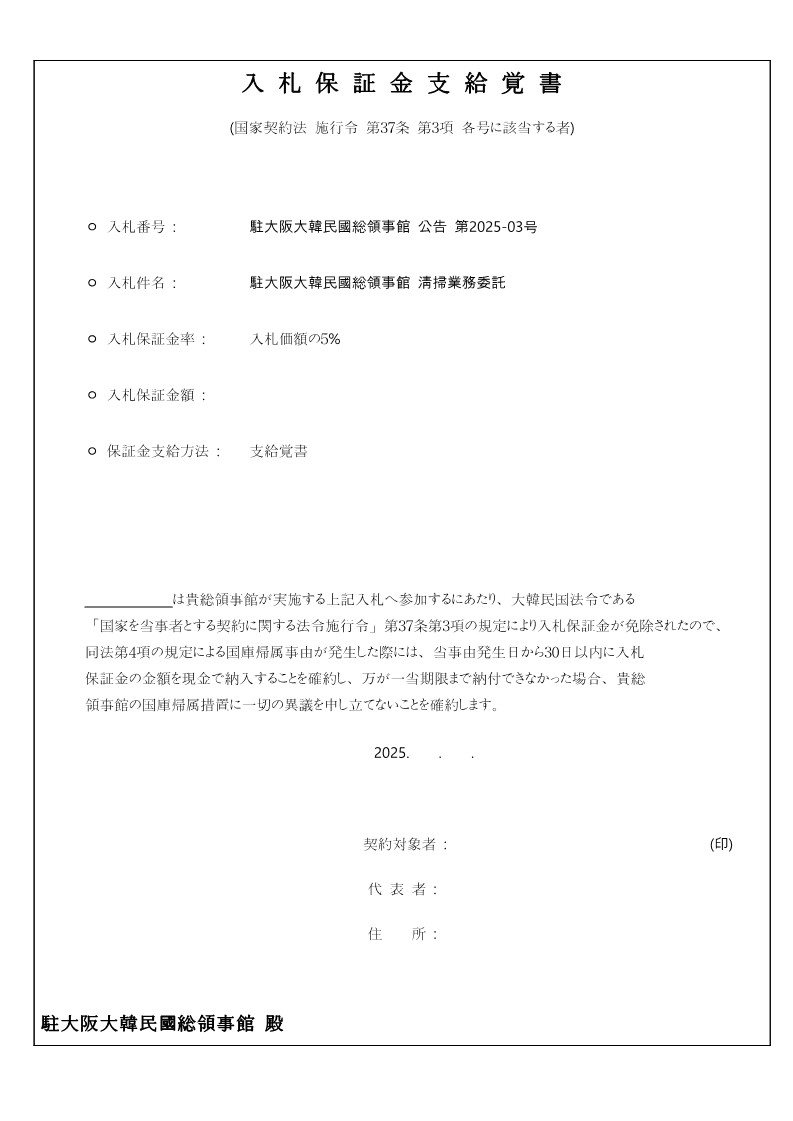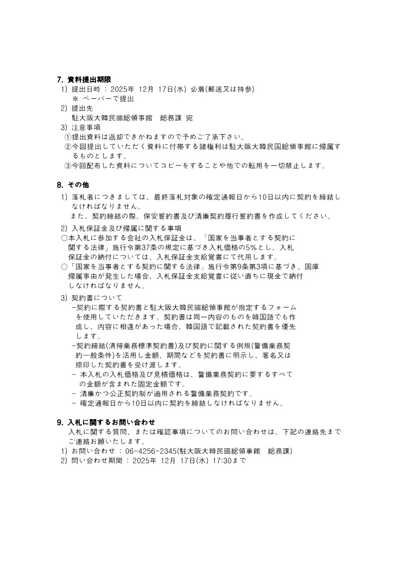 12月10日更新 (日本語)駐大阪大韓民國総領事館 清掃管理業務委託 一般入札公示のご案内