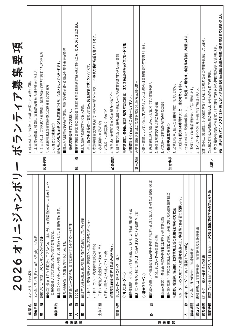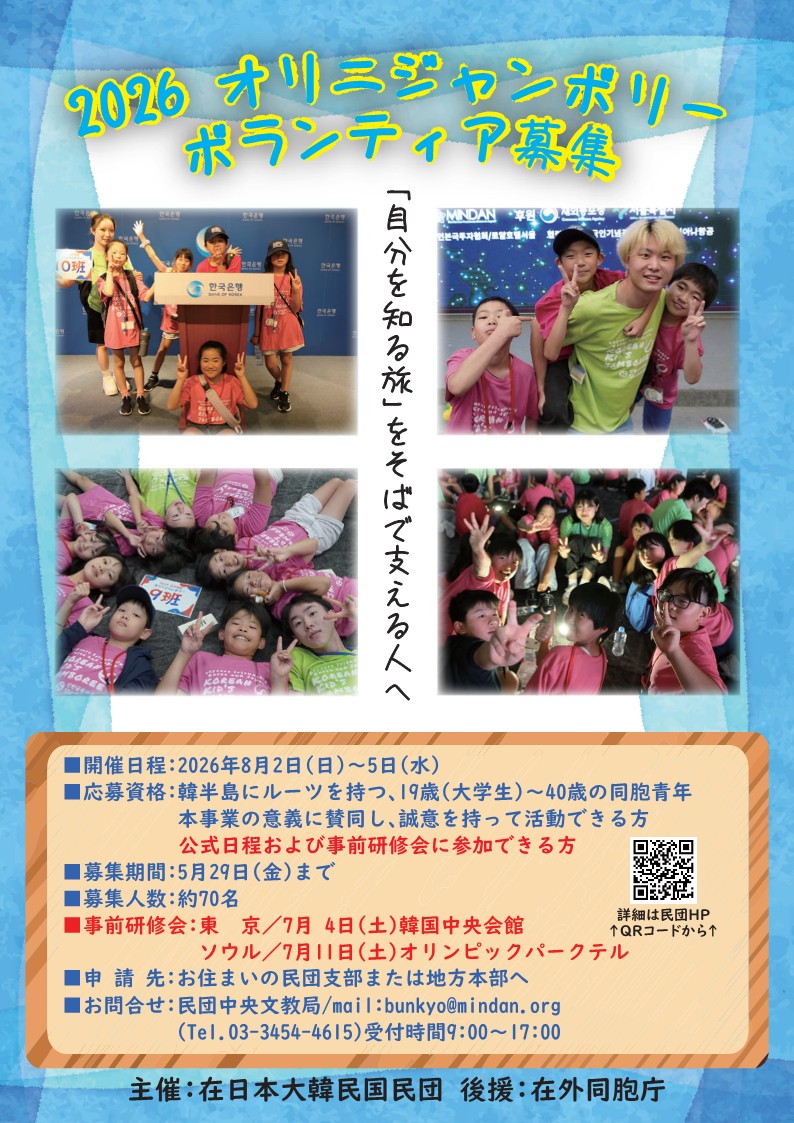 〇事 業 名:2026(第13回)在日同胞オリニジャンボリー